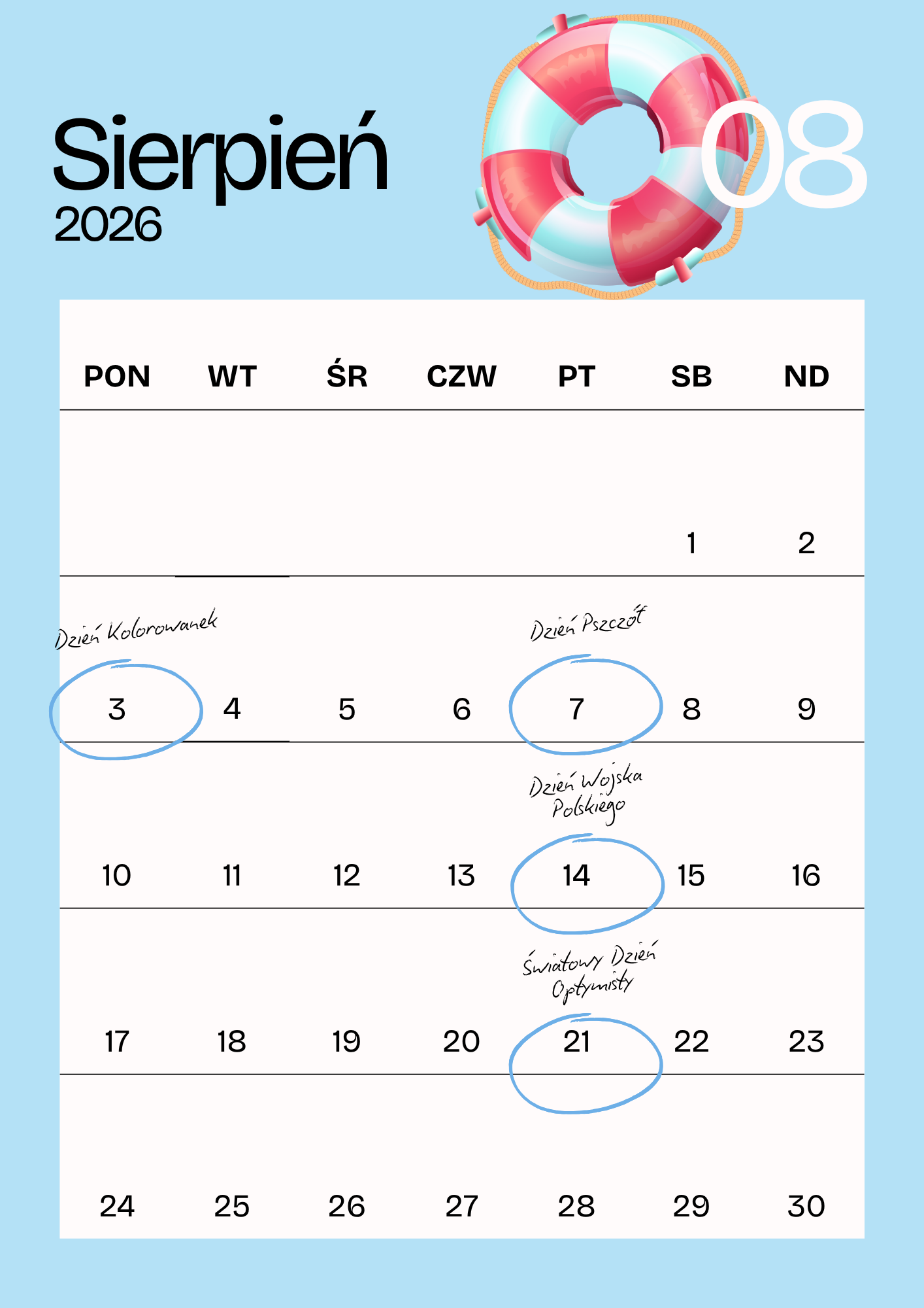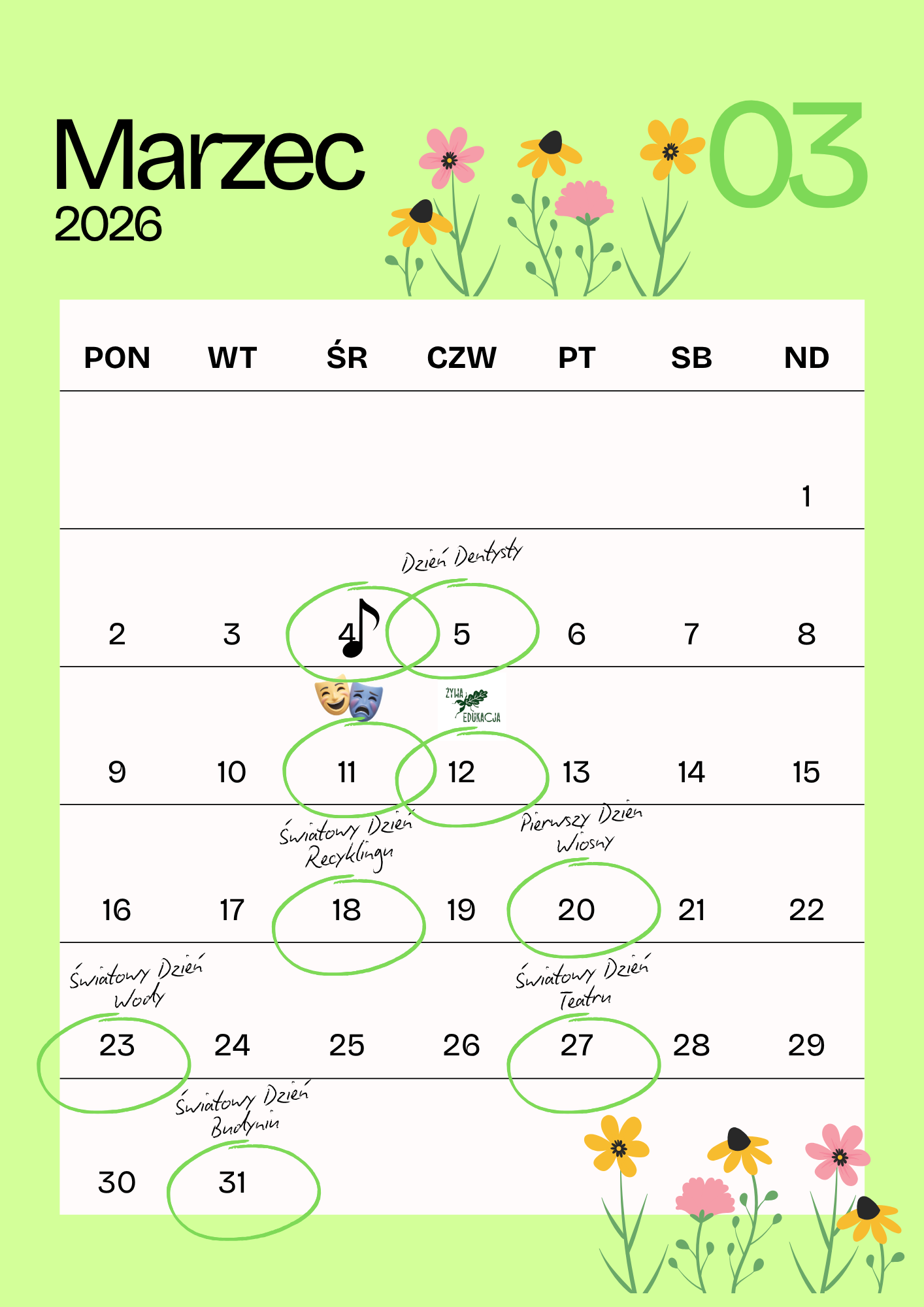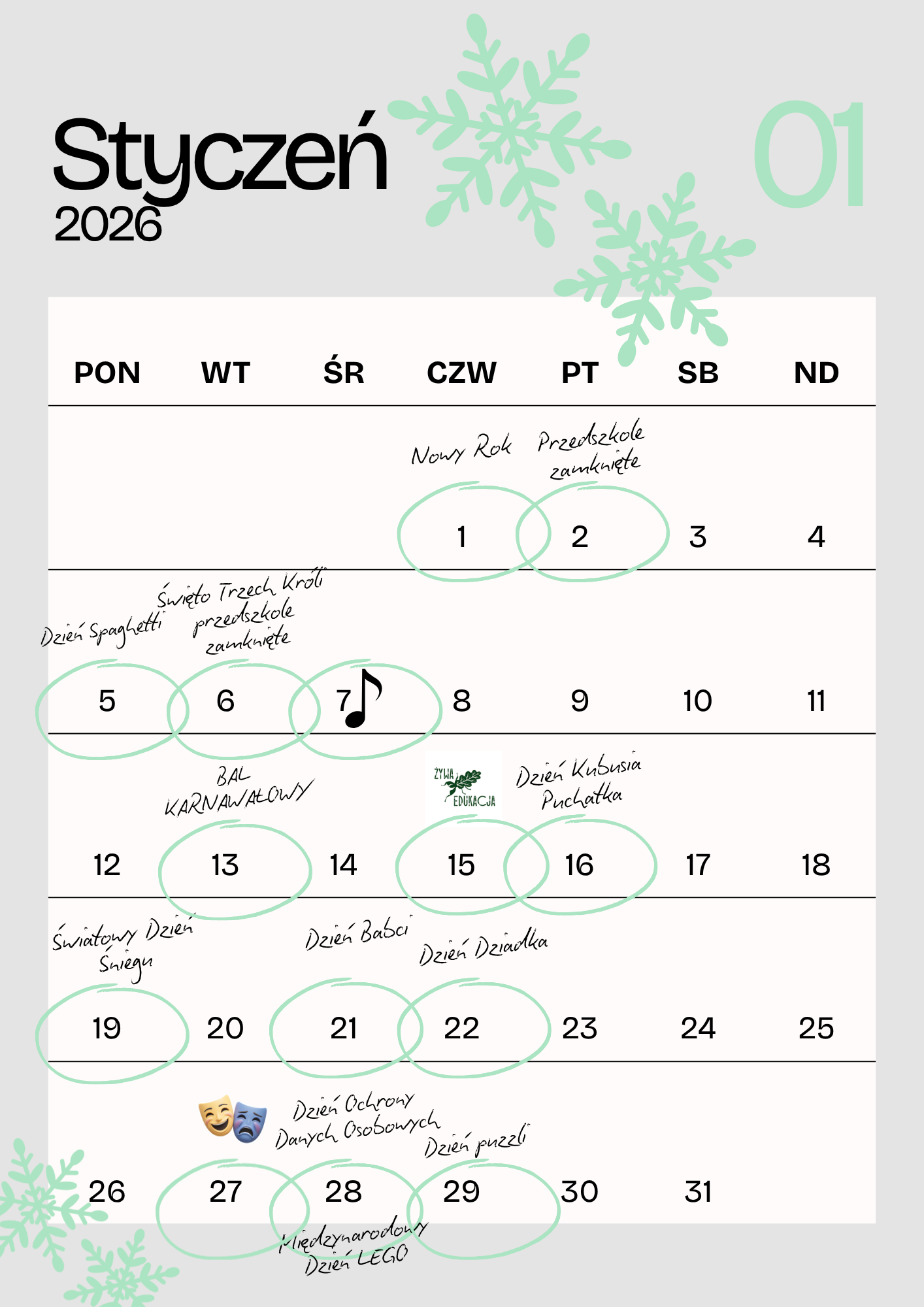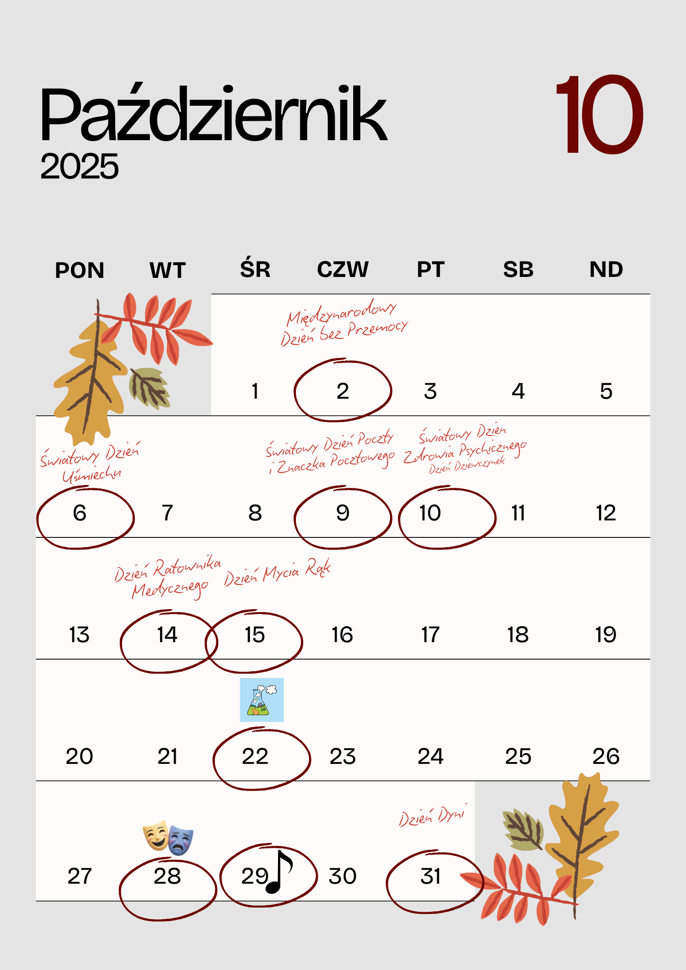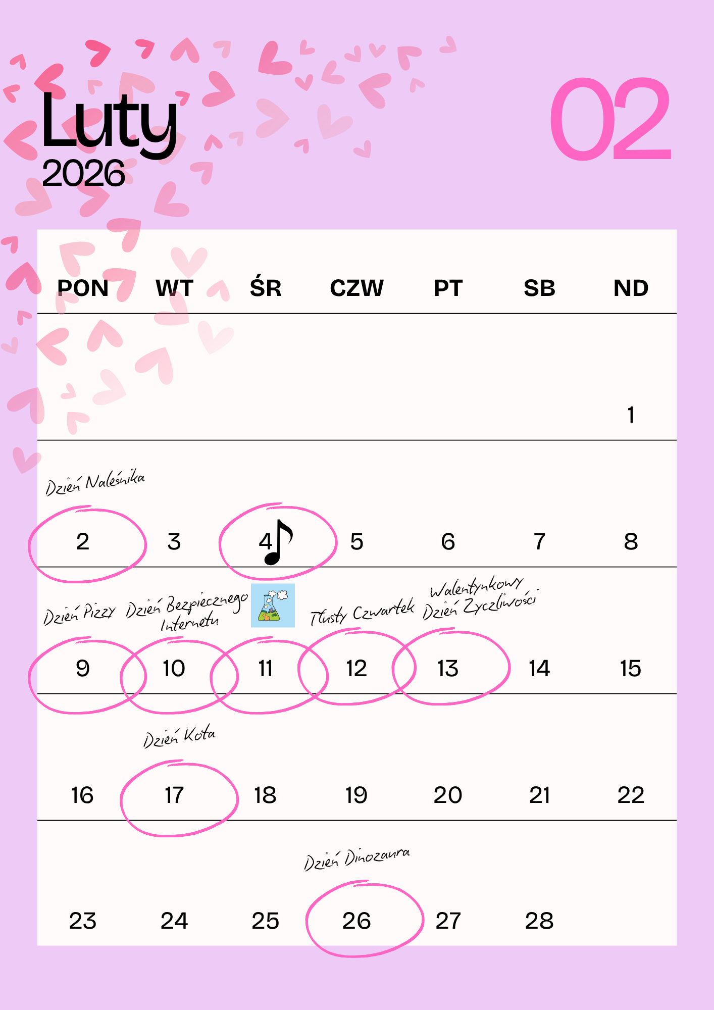poniżej zamieszczamy Kalendarz Dni Nietypowych oraz Dni świątecznych,