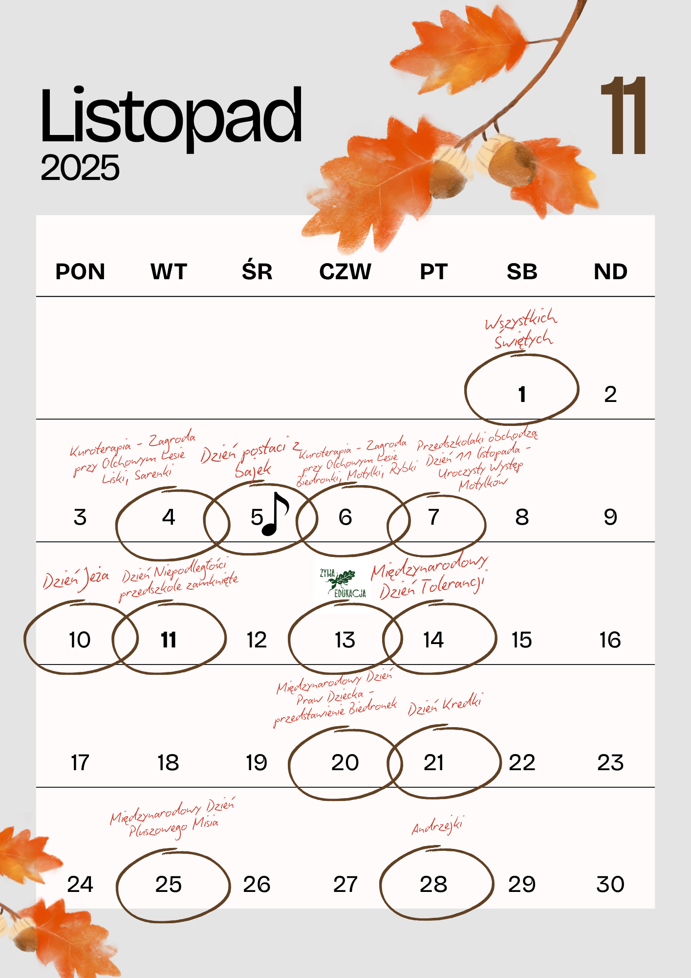 które będziemy obchodzić w naszym przedszkolu w najbliższych miesiącach.